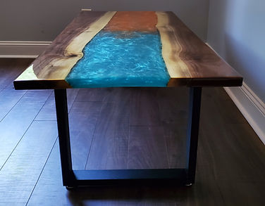 Introducing our stunning two-colored epoxy table, a first for WMSIII Woodworking from back in 2022! This-catching piece features a beautiful blend of blue and orange epoxy resin, elegantly paired with sleek metal bench legs. Perfect for adding a unique touch to any space, this table is not just furniture, it's a work of art that showcases craftsmanship and creativity.